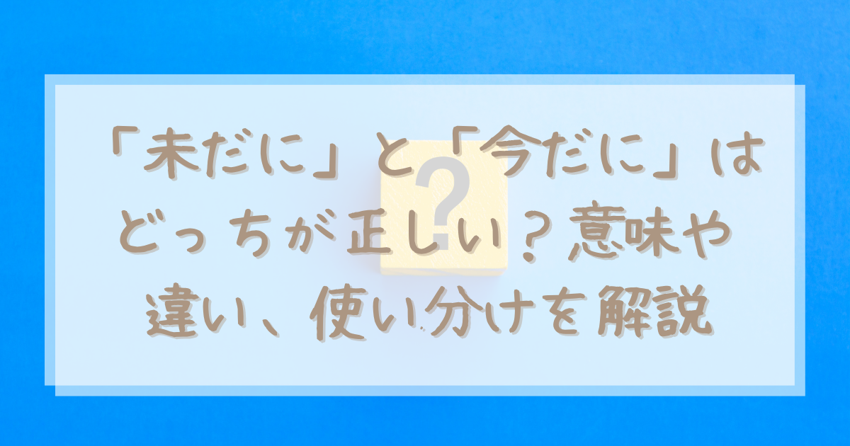 この記事では、「未だに」と「今だに」の違いから、意味・使い方・ビジネスでの注意点まで、わかりやすくまとめています。
