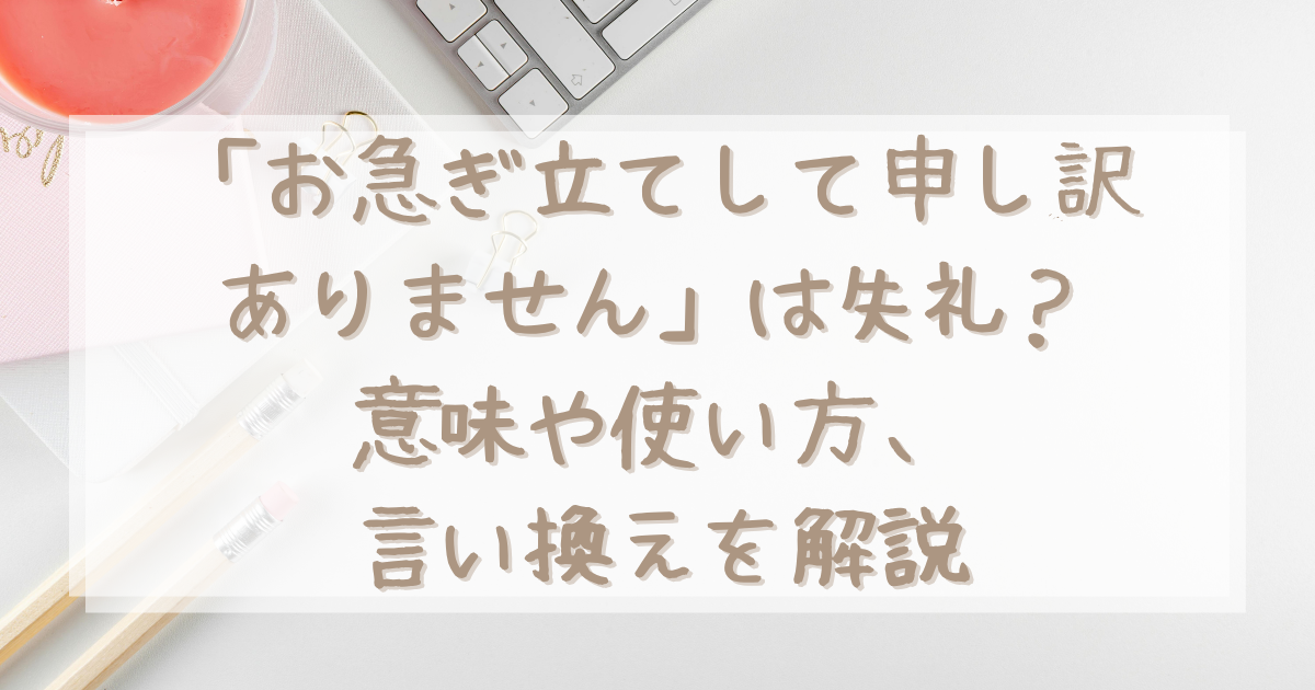 「お急ぎ立てして申し訳ありません」は、相手への配慮を示す丁寧な表現ですが、使い方によってはプレッシャーを与えてしまうこともあります。